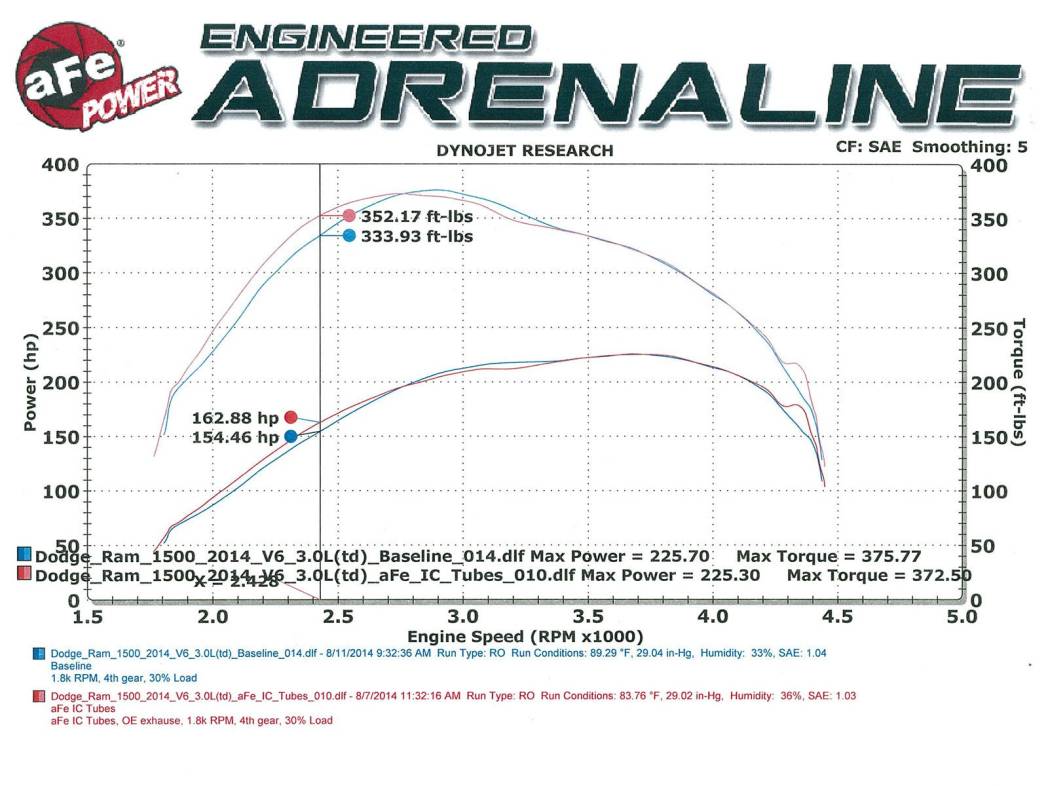 Utilizes the factory mounting locations to provide stability for a hassle-free installation. Includes heavy-duty 5-PLY couplings for strength. The tubes also come equipped with a billet aluminum factory style quick connect adapterthat seals with an o-ring. This tube kit works with stock or aFe's upgraded intercooler (46-20171).