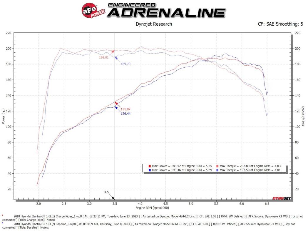 - Directly replace your Elantra's restrictive charge pipes with aFe POWER's BladeRunner free-flowing, heat-resistant aluminum charge pipes.