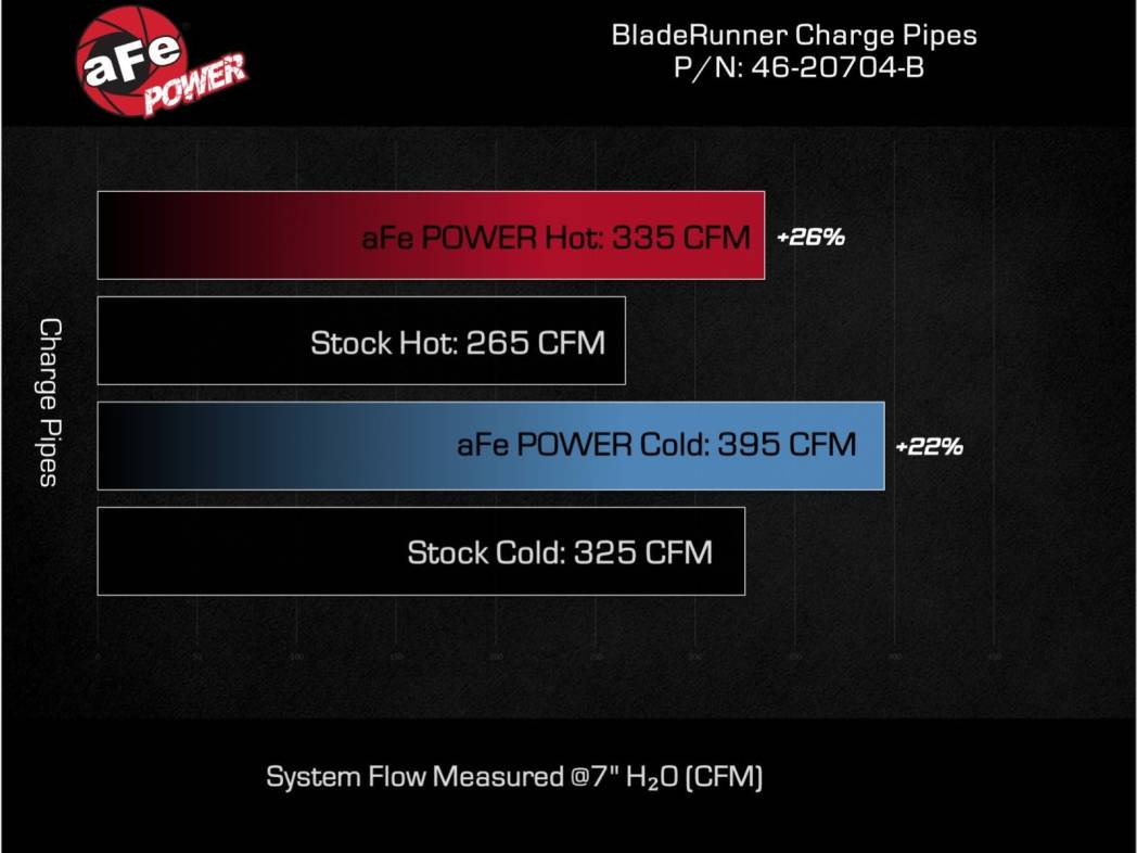 - Directly replace your Duramax’s restrictive charge pipes with aFe's BladeRunner free-flowing, heat-resistant aluminum tubes.