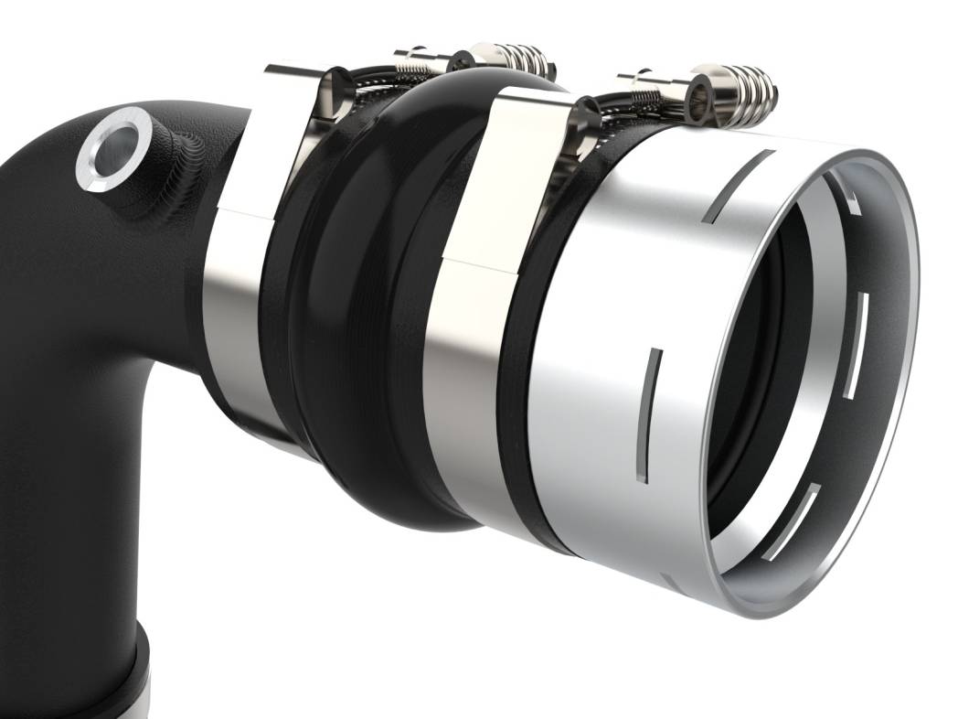 This kit includes high-quality, stainless-steel, spring-loaded T-bolt clamps and heavy-duty, 5-ply, polyester reinforced silicone couplings. This charge pipe kit also features factory style billet aluminum quick-connect adaptors with o-ring seals to ensure a leak-free fit while maintaining superior strength and durability.