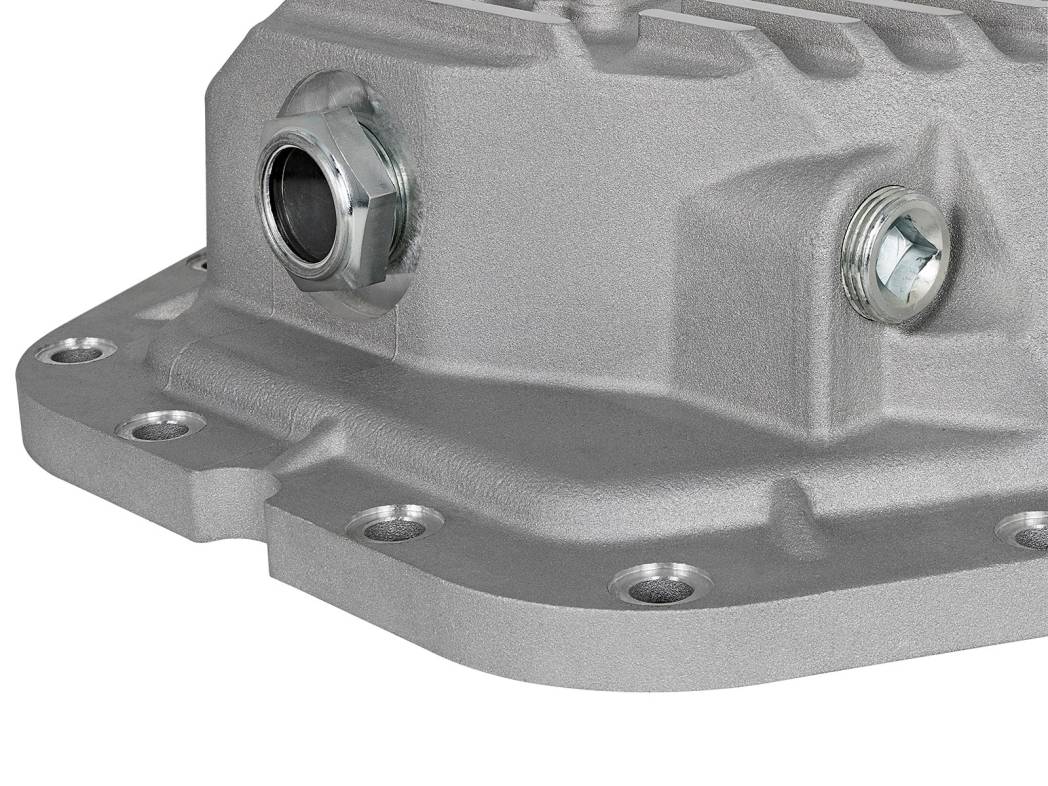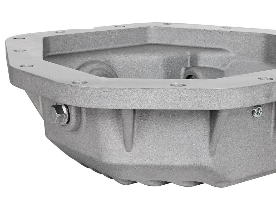 aFe POWER rear differential cover brings performance engineering to the protection of your axle's differential. This differential cover is constructed out of durable A356-T6 cast aluminum with reinforcing ribs for maximum strength. Mounting hardware is included for a hassle-free installation. A calibration plug set to the factory level prevents overfilling of the differential. A magnetic drain plug and a deep reach magnetic fill plug are provided for maximum protection. This cover has a raw finish with machined fins for a distinctive look.