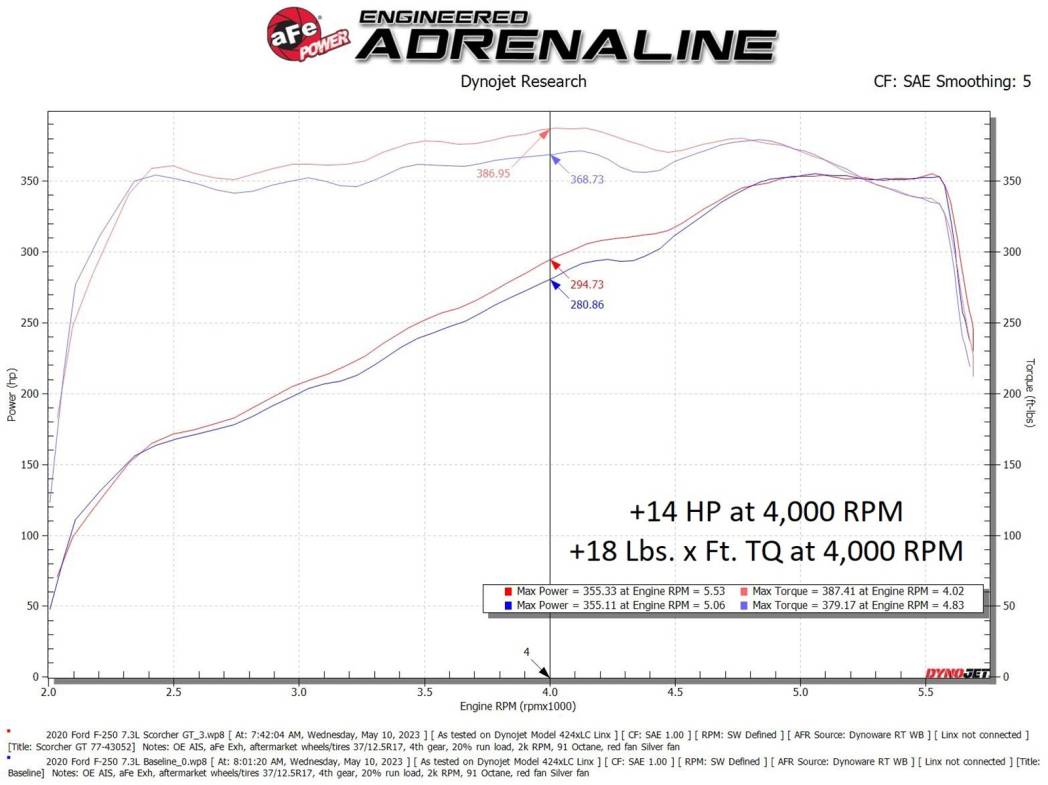 - Dyno tested and produced power increases of +14 HP / +18 lbs. x ft. torque at 4,000 RPM