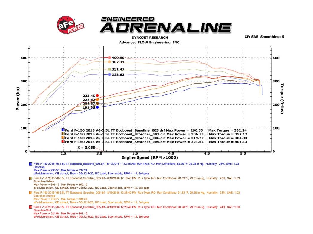 aFe POWER does not recommend using the SCORCHER BLUE module with any other tuners or modules. aFe POWER recommends that only Sport or Sport + settings are used during towing.