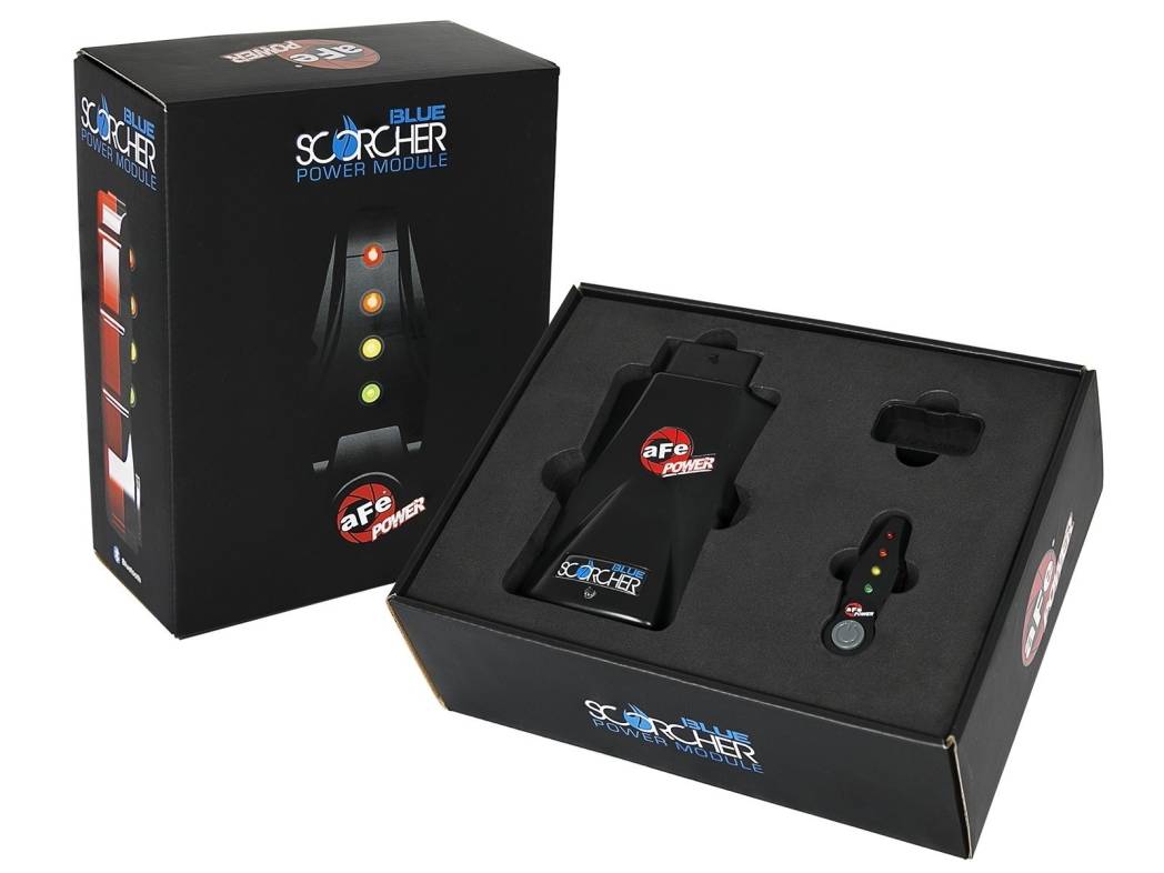 aFe POWER SCORCHER BLUE Power modules are the next generation of plug-and-play electronic module technology. It is the fastest way to safely gain significant horsepower, torque and improve drivability without modifying or leaving any trace on the Engine Control Unit (ECU). The SCORCHER BLUE features an LED control switch for in-cabin, on-the-fly power adjustments with different preset modes. With Bluetooth connectivity you can tap into your iOS or Android device to make power adjustments, custom tune different power modes, view gauges for engine parameters, upgrade to the latest version, measure acceleration times and more. The app is downloadable for free on the App Store or Google Play store.