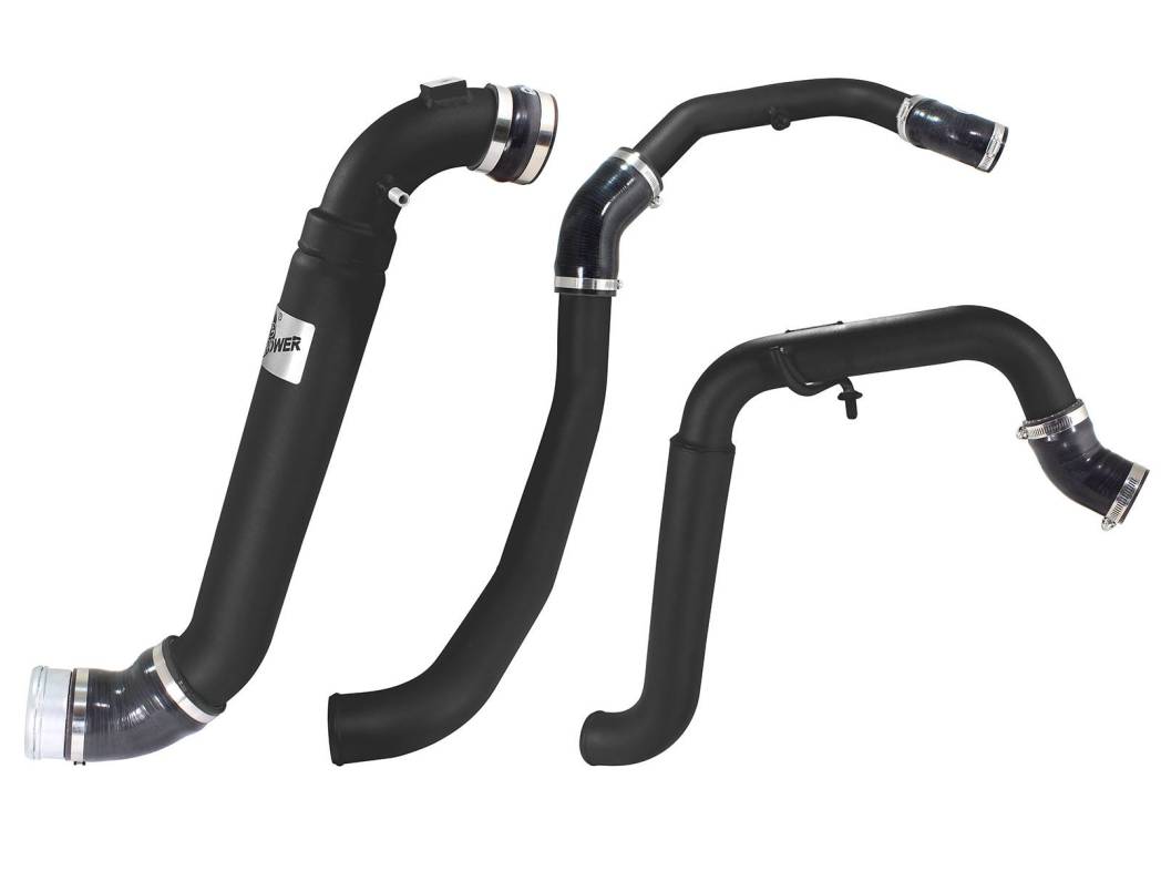 Constructed of mandrel-bent, powder-coated stainless steel and aluminum tubing for maximum flow. The smooth transition bends decrease turbulence and minimize pressure loss, increasing horsepower, increasing torque, and lowering EGT's. Comes complete with 5-ply heavy duty couplings and high-quality stainless-steel clamps for a tight and secure installation.