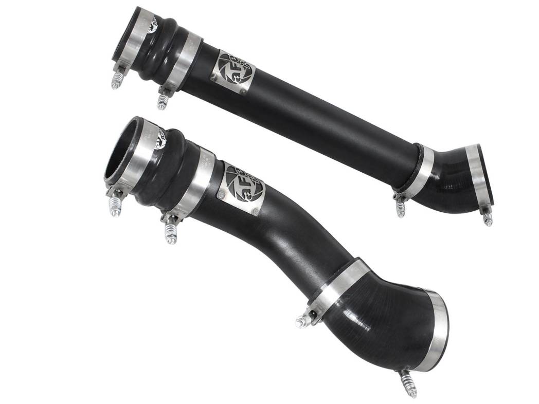 The intercooler tubes are constructed of 3" mandrel-bent aluminum tubing for maximum flow then powder-coated wrinkle-black for heat and corrosion resistance. The smooth mandrel bends allow for low turbulence, increasing horsepower, torque and lowering EGT's.