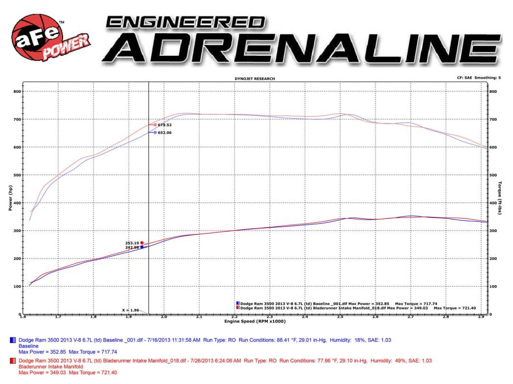 - In recent testing the BladeRunner intake manifold outflowed the factory intake by 34% and resulting in gains of up to 11 HP and 27 lbs. x ft. of torque