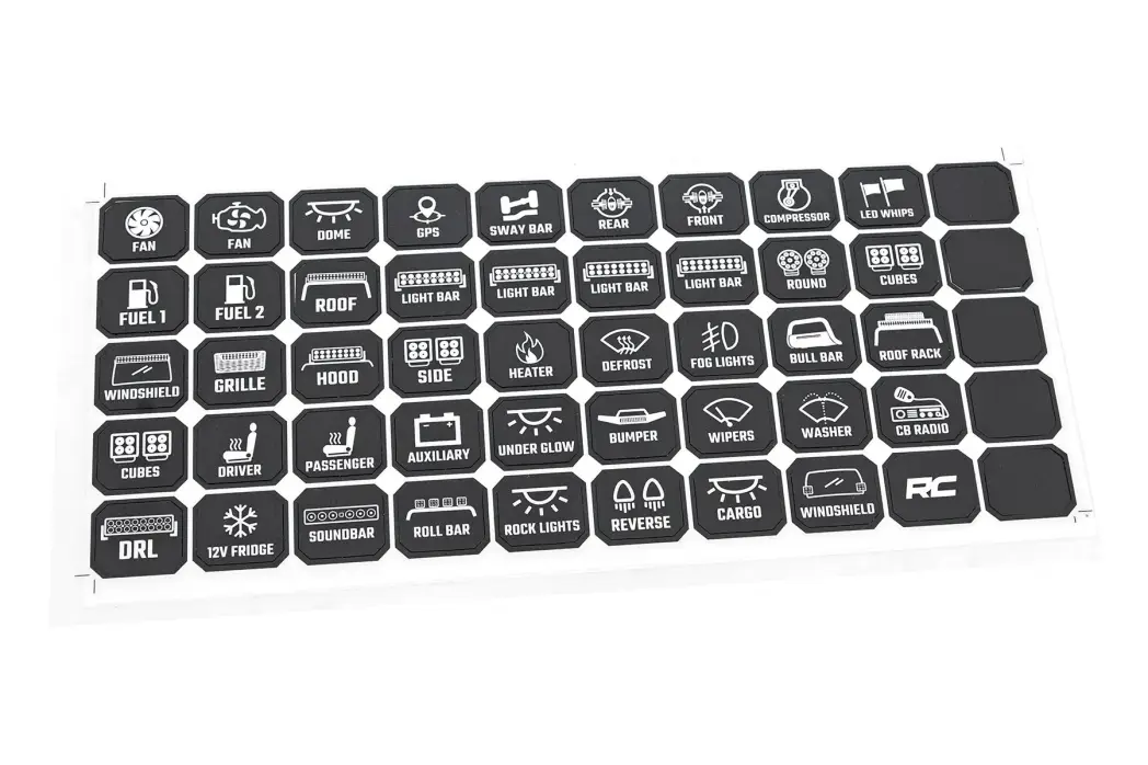Versatile Functionality: Customize your system to fit your build with 50 pre-labeled switch stickers, customizable backlight colors, dimmable brightness, and instant LED status indicators. Integrated Low-Voltage Cut-Off ensures your battery stays protected during extended use, while the master on/off button gives you quick control of your entire system. Whether for lighting, compressors, or other accessories, this universal controller adapts to any rig.