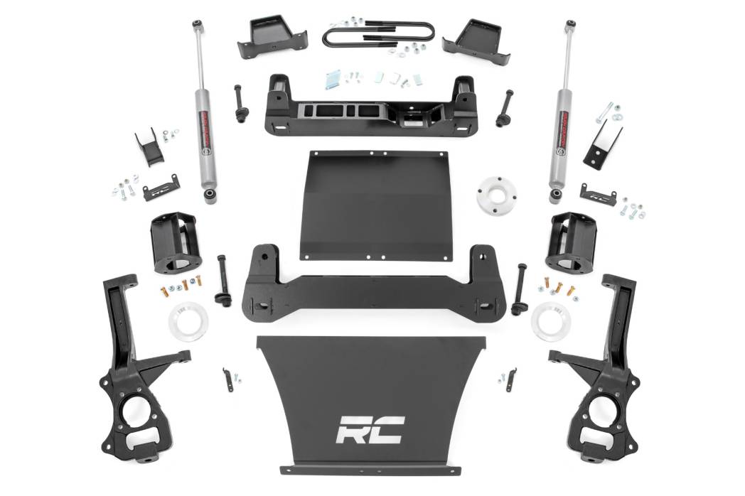 Innovative Design and Construction: When changing a vehicle's suspension, the key to preserving ride quality is keeping the geometry of all suspension components as close to their factory angles as possible. This suspension kit combines the use of durable steel knuckles and drop cross members to reduce control arm angles and simulate factory angles all while achieving new heights. Featuring a set of upper strut spacers that offer uncompromised strength and rigidity, gaining lift height is no issue. Completing the rear of this suspension kit is a set of rear blocks, shocks, and u-bolts that allow you to retain factory-like geometry. This combined setup provides enough clearance to run 35" tires without additional modifications. We didn't want to limit you to one standard kit. Rough Country's 6-inch kit is configurable with all the shock options that we offer. This allows you to choose which shock series you want! Ranging from our nitrogen-charged N3 shocks to our Vertex reservoir shocks the power to choose is in your hands.