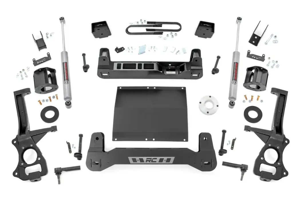 Innovative Design and Construction: When changing a vehicle's suspension, the key to preserving ride quality is keeping the geometry of all suspension components as close to their factory angles as possible. This suspension kit combines the use of durable steel knuckles and drop cross members to reduce control arm angles and simulate factory angles all while achieving new heights. Featuring a set of upper strut spacers that offer uncompromised strength and rigidity, gaining lift height is no issue. Completing the rear of this suspension kit is a set of rear blocks, shocks, and u-bolts that allow you to retain factory-like geometry. This combined setup provides enough clearance to run 35" tires without additional modifications. We didn't want to limit you to one standard kit. Rough Country's 6-inch kit is configurable with all the shock options that we offer. This allows you to choose which shock series you want! Ranging from our nitrogen-charged N3 shocks to our Vertex reservoir shocks the power to choose is in your hands.