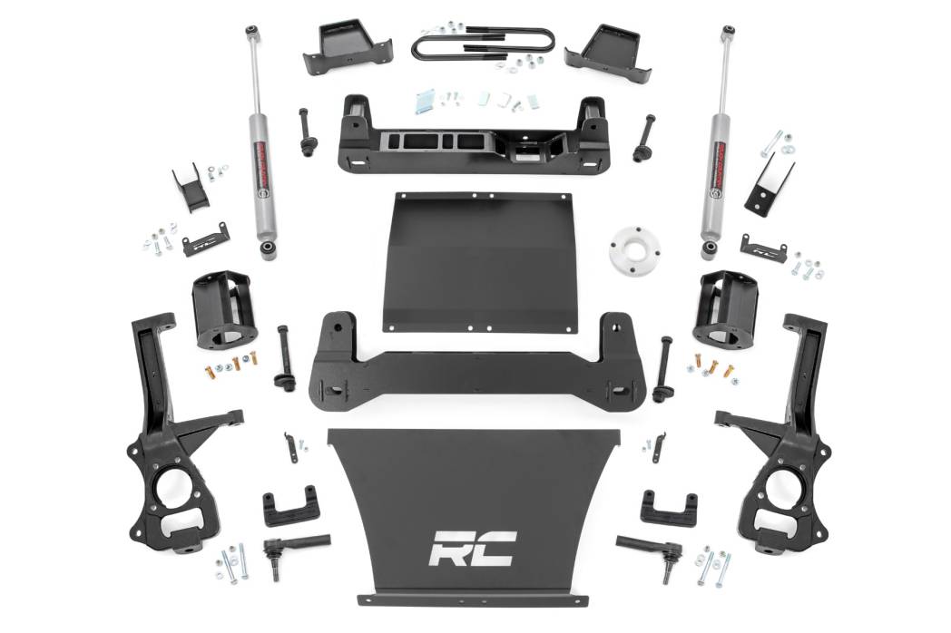 Innovative Design and Construction: When changing a vehicle's suspension, the key to preserving ride quality is keeping the geometry of all suspension components as close to their factory angles as possible. This suspension kit combines the use of durable steel knuckles and drop cross members to reduce control arm angles and simulate factory angles all while achieving new heights. Featuring a set of upper strut spacers that offer uncompromised strength and rigidity, gaining lift height is no issue. Completing the rear of this suspension kit is a set of rear blocks, shocks, and u-bolts that allow you to retain factory-like geometry. This combined setup provides enough clearance to run 35" tires without additional modifications. We didn't want to limit you to one standard kit. Rough Country's 6-inch kit is configurable with all the shock options that we offer. This allows you to choose which shock series you want! Ranging from our nitrogen-charged N3 shocks to our Vertex reservoir shocks the power to choose is in your hands.