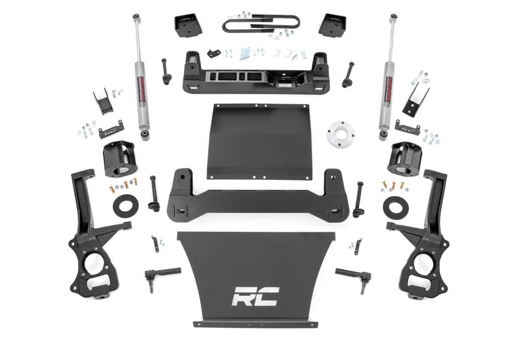 Innovative Design and Construction: When changing a vehicle's suspension, the key to preserving ride quality is keeping the geometry of all suspension components as close to their factory angles as possible. This suspension kit combines the use of durable steel knuckles and drop cross members to reduce control arm angles and simulate factory angles all while achieving new heights. Featuring a set of upper strut spacers that offer uncompromised strength and rigidity, gaining lift height is no issue. Completing the rear of this suspension kit is a set of rear blocks, shocks, and u-bolts that allow you to retain factory-like geometry. This combined setup provides enough clearance to run 35" tires without additional modifications. We didn't want to limit you to one standard kit. Rough Country's 6-inch kit is configurable with all the shock options that we offer. This allows you to choose which shock series you want! Ranging from our nitrogen-charged N3 shocks to our Vertex reservoir shocks the power to choose is in your hands.