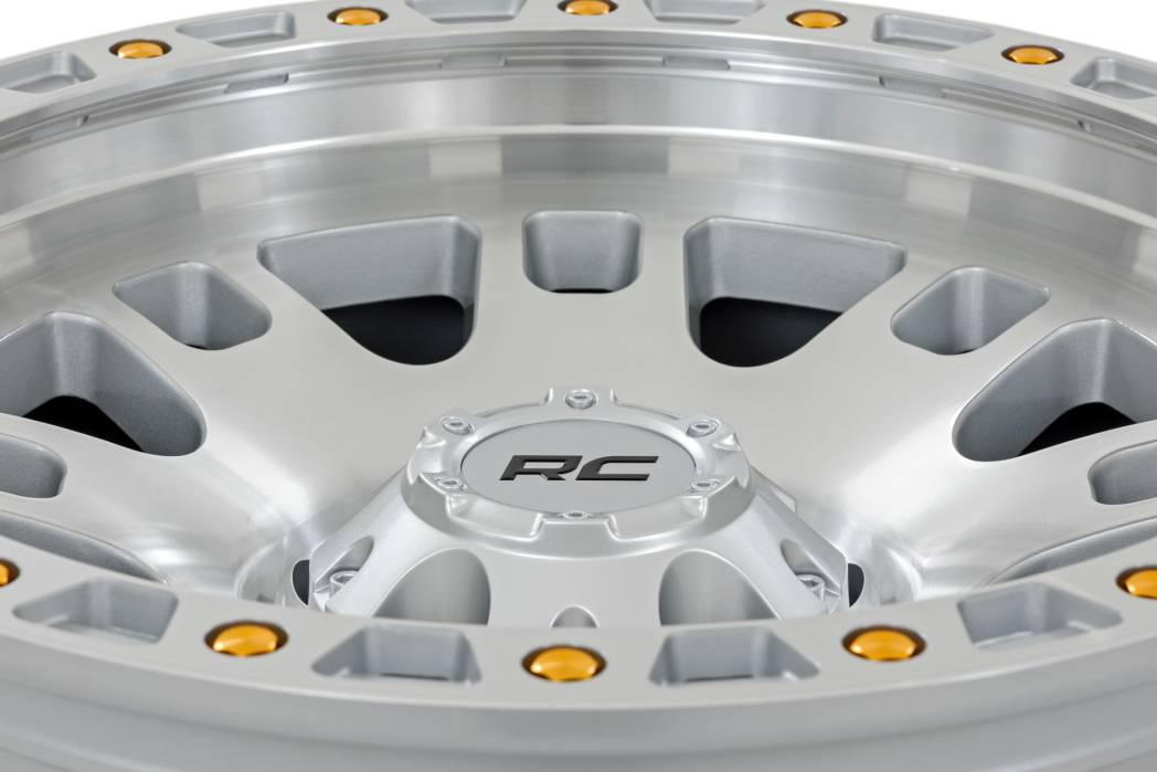Custom RC Center Cap: Each wheel includes a matching machined Rough Country center cap with bold black RC lettering for a clean branded touch.