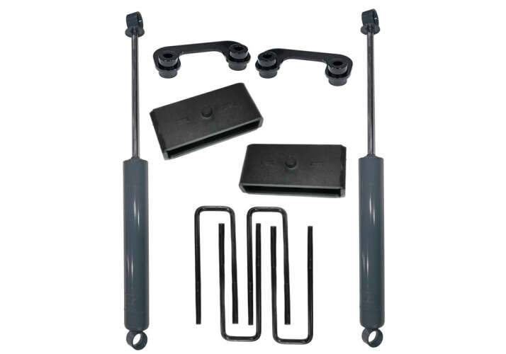This 2” Silverado or Sierra kit provides a moderate lift kit for the front suspension, a rear block & U-bolt kit plus rear shock absorbers. Priced much less than traditional taller lifts, this is the simple solution for those wanting an economical & easy way to make room for taller tires for ground clearance or a plus-size the tire & wheel package on the vehicle.