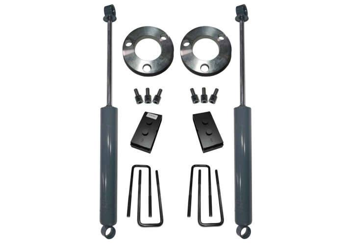 This 1.75” Ford F-150  kit provides a moderate lift kit for the front suspension, a rear block kit plus rear Superlift shock absorbers. Priced much less than traditional taller lifts, this is the simple solution for those wanting an economical & easy way to make room for taller tires for ground clearance or a plus-size the tire & wheel package on the vehicle.