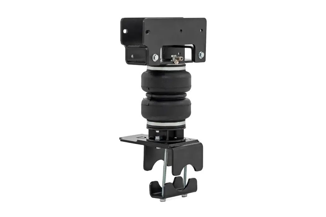 Heavy-Duty Construction: Rough Country's Rear Air Spring Kit includes two high-quality, double convoluted air bags, reinforced with durable powder-coated steel brackets and DOT-approved airlines. Whether you're towing a trailer or hauling heavy loads, this kit helps ensure your vehicle remains level, alleviating the strain on your trailer's tongue weight. The kit features 1/4" push-to-connect air fittings for easy installation, along with all necessary bracketry for a secure fit. Rough Country's Air Spring Kit supports up to 5,000 lbs of load, minimizing sway and preventing bottoming out while braking and steering.