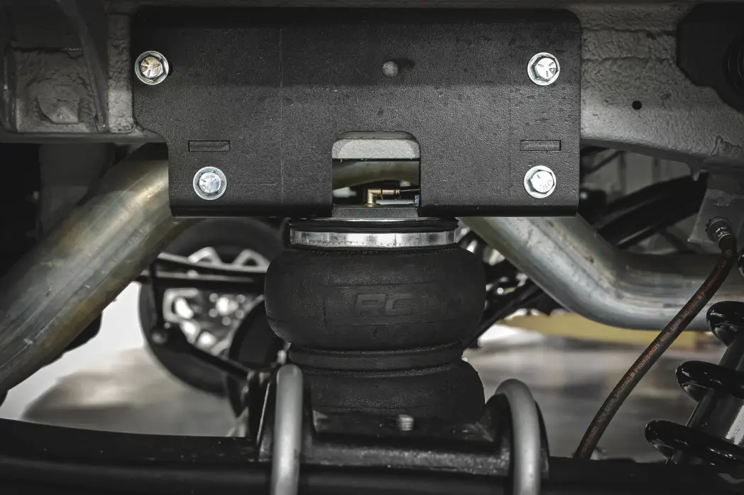 Onboard Air Compressor and Wireless Controller: For added convenience, Rough Country offers an optional onboard air compressor and wireless controller to easily adjust your air spring kit on the go. Control air pressure at the push of a button from the comfort of your vehicle.
