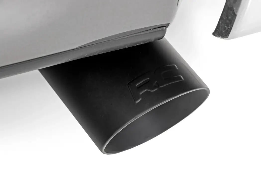 Complete Your Look with Aggressive Style: Add the perfect finishing touch to your truck with Rough Country's Black Exhaust Tip featuring the laser-etched "RC" logo. Designed to make a bold statement, this tip combines form and function with a stealthy flat black finish and a dual-wall design built to last.