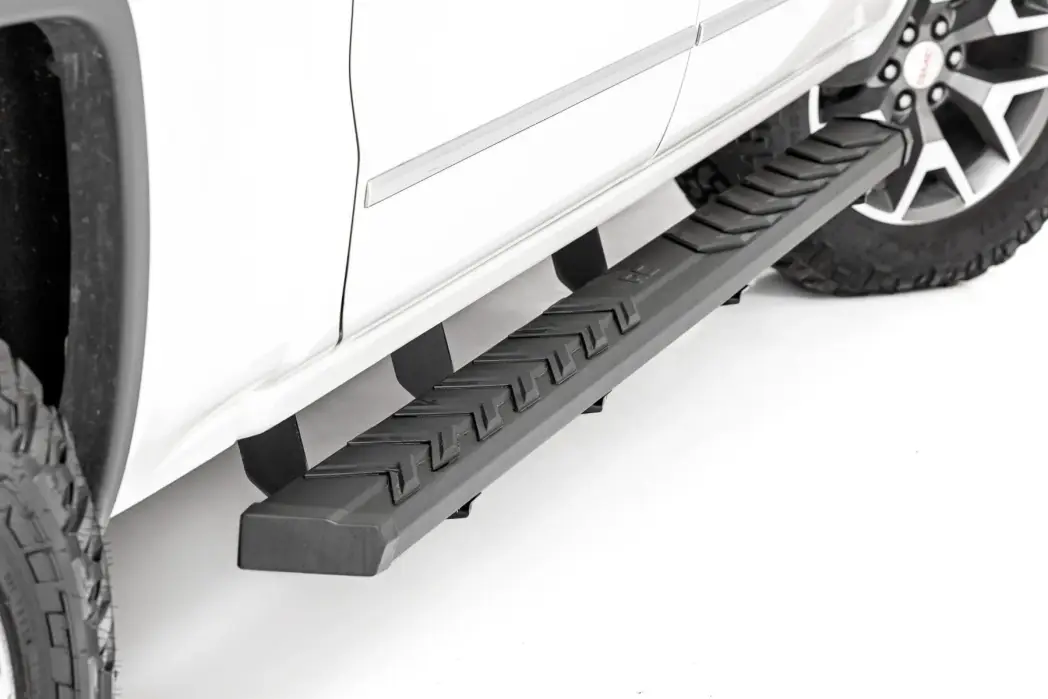 Heavy-Duty Construction: Built to last, Rough Country's BA2 Running Board Side Steps feature a durable steel construction with a textured powder-coated finish for superior corrosion resistance. The integrated nonslip stepping surface ensures maximum traction, even in wet or muddy conditions. Engineered to support up to 500 lbs., these steps are as strong as they are stylish.