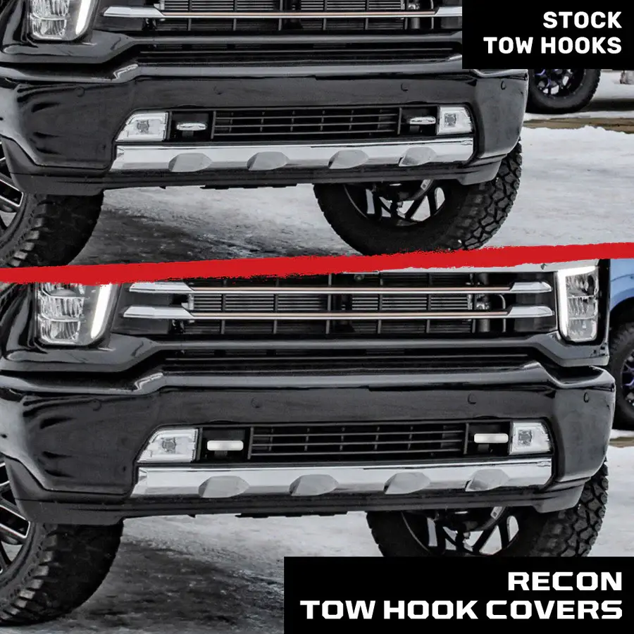 RECON - Chevy 2020-2025 Silverado 1500 Tow Hook Covers 2-Piece Set of 100% Silicone Rubber Tow Hook Covers Standard & LED Options
