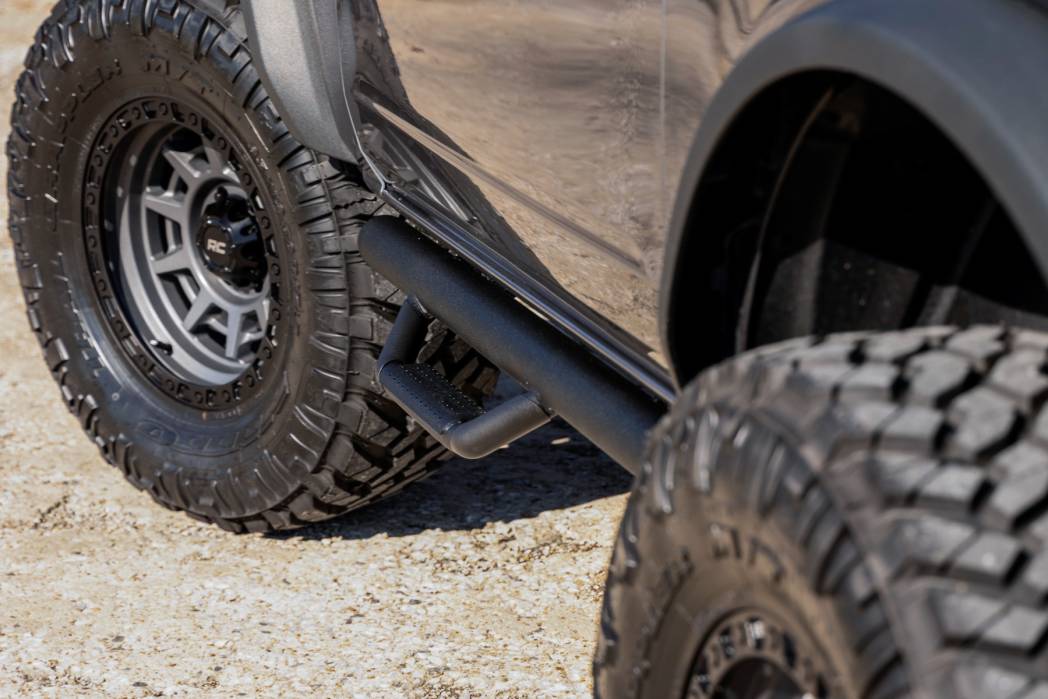Step up your Bronco's style and protection with Rough Country Nerf Steps. Easy installation, superior defense, and a sleek, high-end design, everything you need to take your vehicle to the next level.