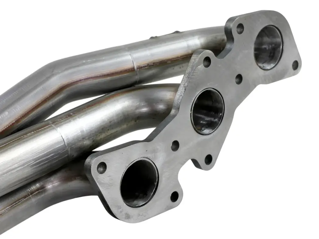 aFe POWER Twisted Steel Headers are constructed of 1-5/8" 16-gauge 409 stainless steel tubing with 3/8" thick CNC Laser cut flanges to ensure a leak-free seal. To eliminate dead space that can cause turbulence and hinder flow that formed s are prone to produce, a mitered merge and optimized tube lengths are used for true pulse control technology improving flow and performance. The smooth curves and increased diameter of this header helps remove restriction and keeps exhaust gas flowing smoothly for improved performance and durability. All components are supplied for a hassle-free bolt-on and go installation with no modifications necessary.