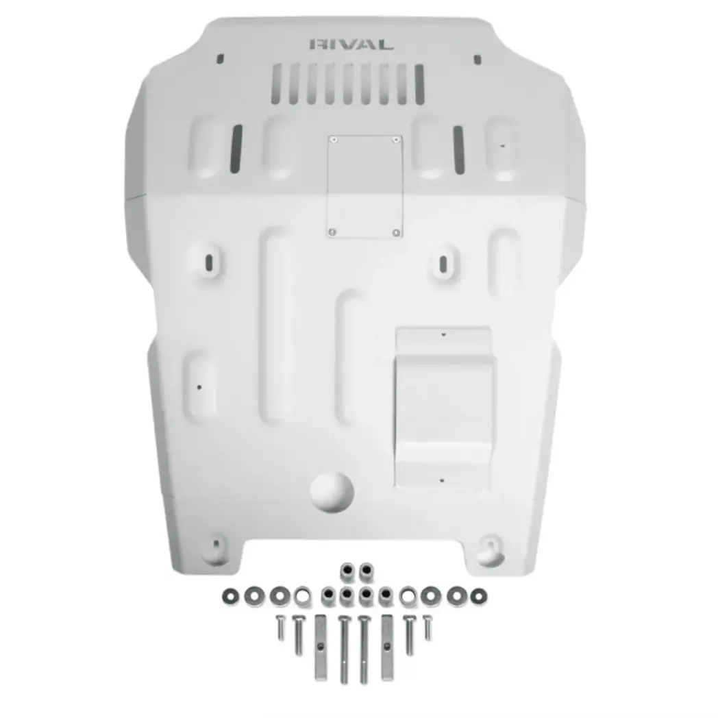 The high-quality laser cut RIVAL skid plates are made from deep stamped 1/4-inch thick aluminum alloy. This durable underbody armor offers both a lightweight and high strength solution for underbody protection. Combined with a no drill installation, it’s an easy choice to protect underbody of your vehicle from rocks, logs and scrapes. Being an extremely corrosion resistant material aluminum will not rust even if the surface coating becomes gouged or scratched.