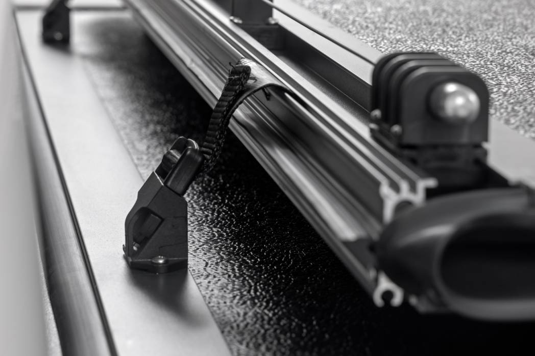 - Sleek Low-Profile Design: Flush-fitting bed cover with a matte black finish and durable aluminum panels for a clean, modern look.