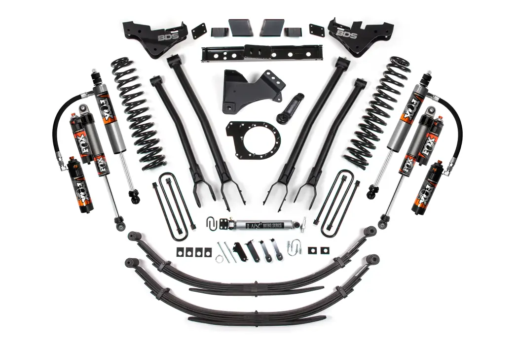 BDS2253FPE | BDS Suspension 7 Inch Lift Kit With 4 Link For Ford F-250 / F-350 Super Duty 4WD Diesel | Rear Lift Leaf Springs, Fox 2.5 Performance Elite Shocks