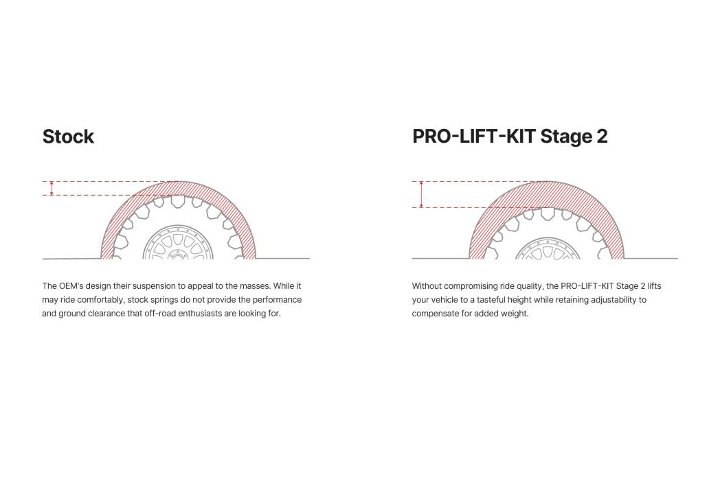 - Stage 2 system featuring Pro-Truck-Coilover 2.0's + Rear Sport Shocks