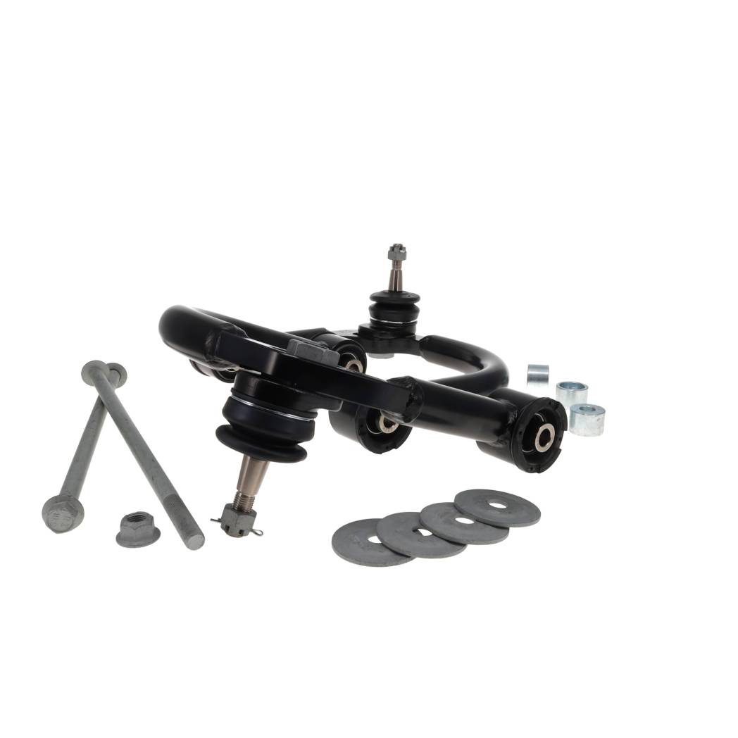 Lifted trucks lose caster which wears tires and leads to wandering at high speeds. These adjustable front upper control arms improve droop travel, drivability and tire wear as well as adjusting tire position in your wheel well. Now equipped with maintenance free ball joints and xAxis™ sealed flex joints in bonded rubber sleeves, these arms are designed to correct alignment angles while maintaining factory ride quality. SPC's tubular steel design provides the strength and durability needed for the most demanding environments. These remove and replace arms are sold in pairs. With 80° of articulation in the ball joint and free pivoting cross axis bushings, SPC's arm gives you maximum droop travel and unbound articulation. Get your drivability and tracking back: When you lift your truck you affect caster and camber. SPC's arms have +1° of caster built into them. Using its patented ball joint design the arm will get you ±2.0° of caster and ±2.0° of camber, so you can put your alignment angles back to specification. Improve tire clearance: Use adjustment in the SPC arm and on the OE lower arm to maximize alignment angles and move oversized tires forward in the wheel well to minimize or avoid fender trimming.
