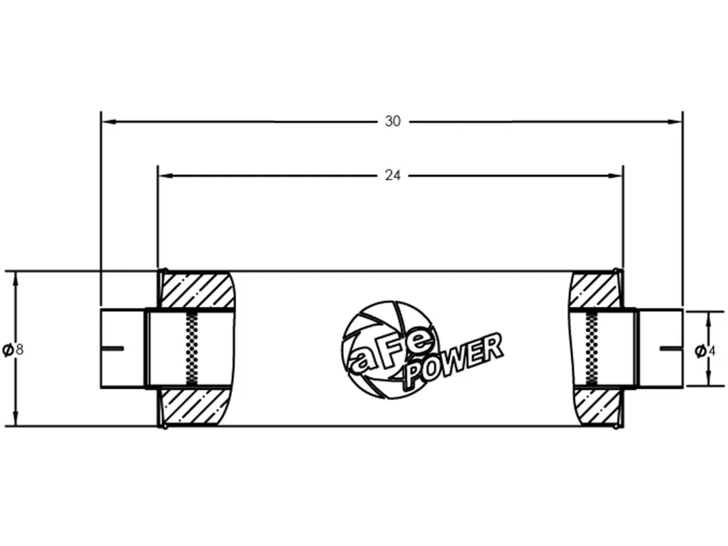 4" ID Inlet/Outlet x 30" Overall Length, 8"Body Diameter