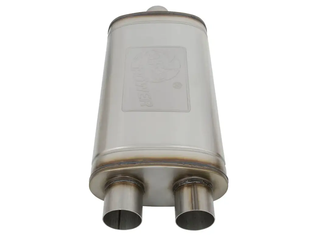 The aFe Universal fit 409 Stainless Steel Performance Muffler is designed to provide a deep, throaty, powerful sound on acceleration but maintain a smooth sound at idle. This muffler is constructed of brushed finished 409 stainless steel and uses a straight through perforated core with heat resistant packing to reduce backpressure and maximize exhaust flow. You will see increased performance and improved throttle response over the factory exhaust. Also featuring a stamped aFe Power logo for an aggressive style.