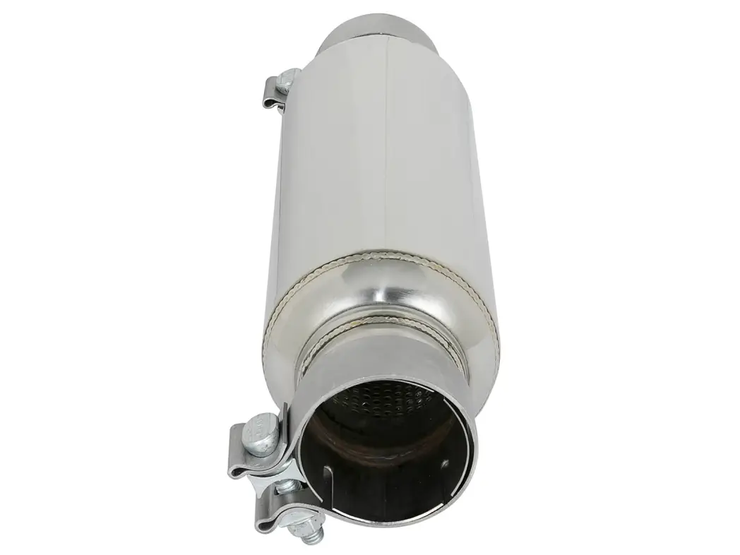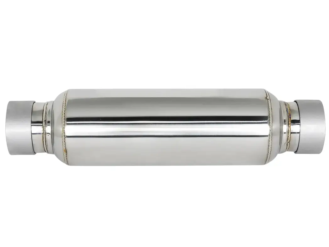 Reduce unwanted interior resonance or drone with this polished 304 stainless steel resonator. This resonator is constructed out of 304 stainless steel and comes complete with high quality band clamps for an easy installation. Specifically designed for 2-1/2" exhaust systems, this resonator has a 4" Dia. x 12" Body, 16" overall length, and build for durability and rust resistance. This system will result in low turbulence, maximum flow, increased horsepower, and increased torque.