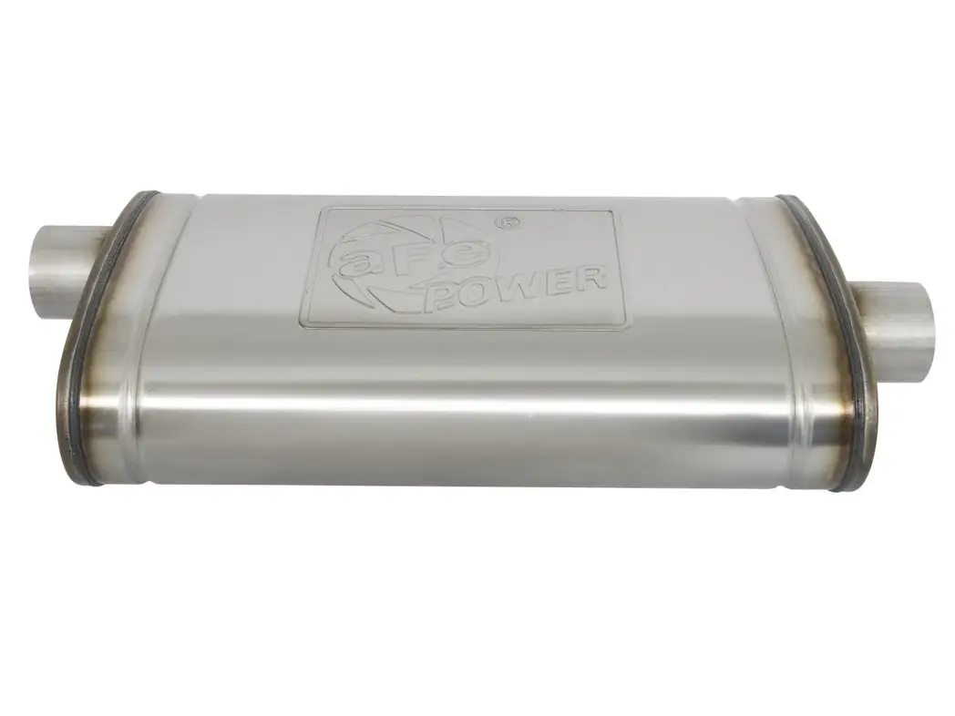 Features an aFe POWER logo stamped onto the muffler for quality, brand authenticity.