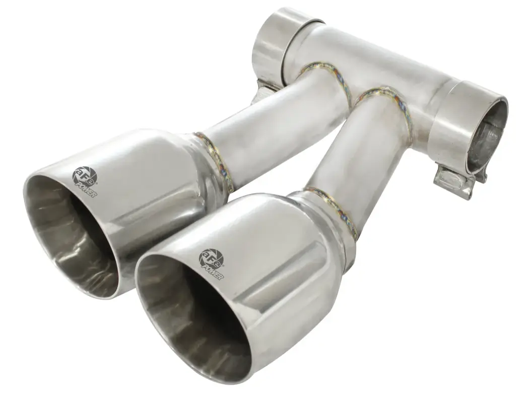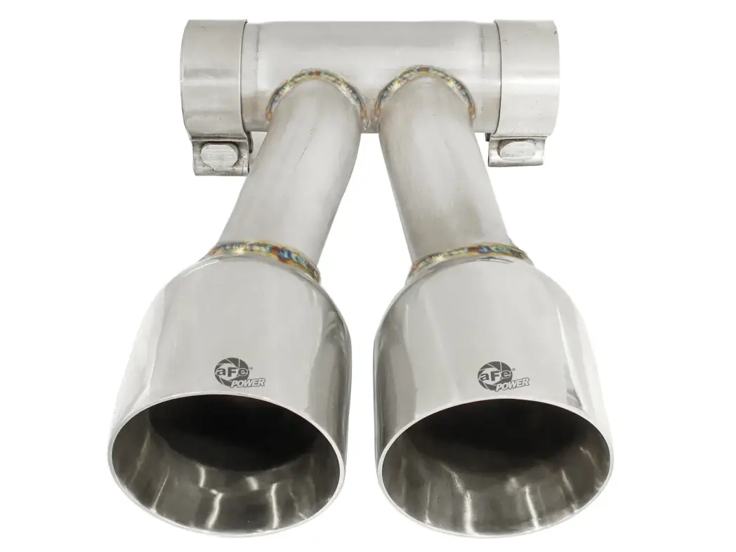 The aFe exhaust tip assembly incorporates a diverter extension into the balance chamber directs exhaust gases more smoothly and efficiently while retaining the balance chamber. This unique design resulted in improved performance across the power band.