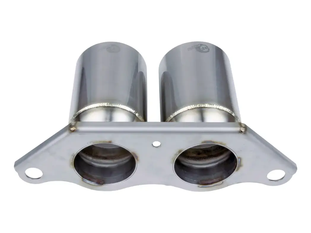 These tips are 4" diameter straight-cut brushed finished stainless steel exhaust tips that gives your Porsche a custom appearance.