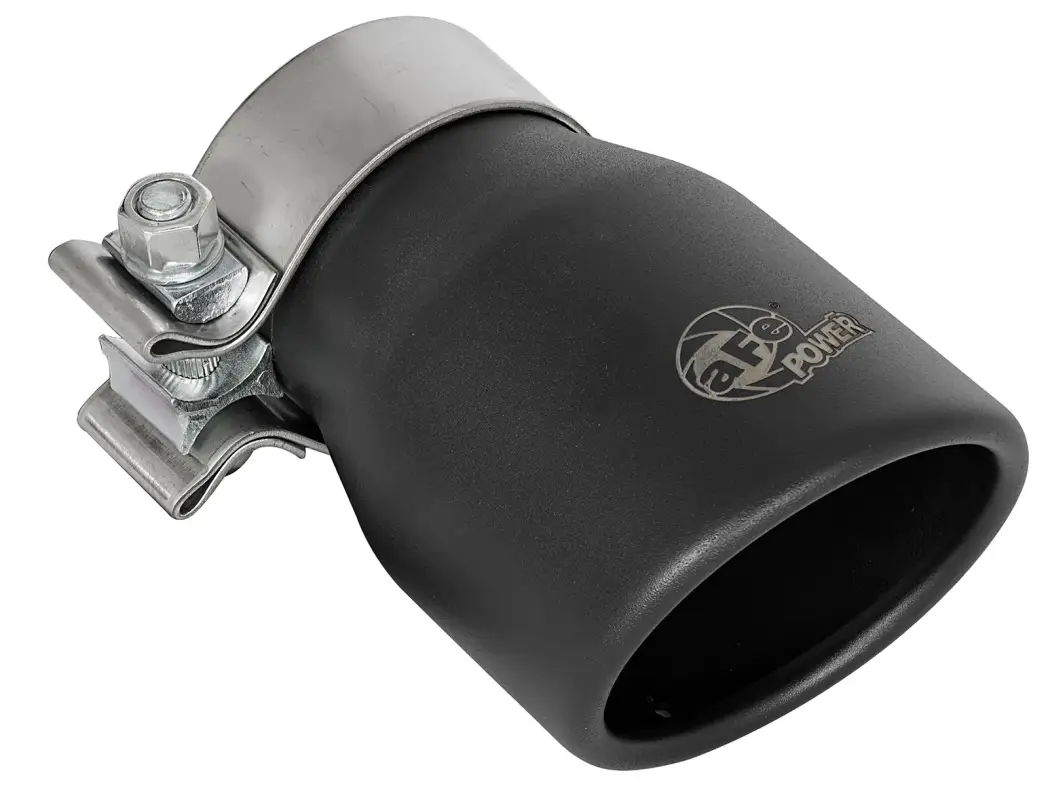 aFe Power is proud to introduce the all new universal exhaust tip. This tip comes with an all-black finish and is designed to fit 2-1/2" exhaust systems. This is a 2-1/2" inlet x 3-1/2" outlet and 6" inch length, single-walled, angle cut rolled tip.