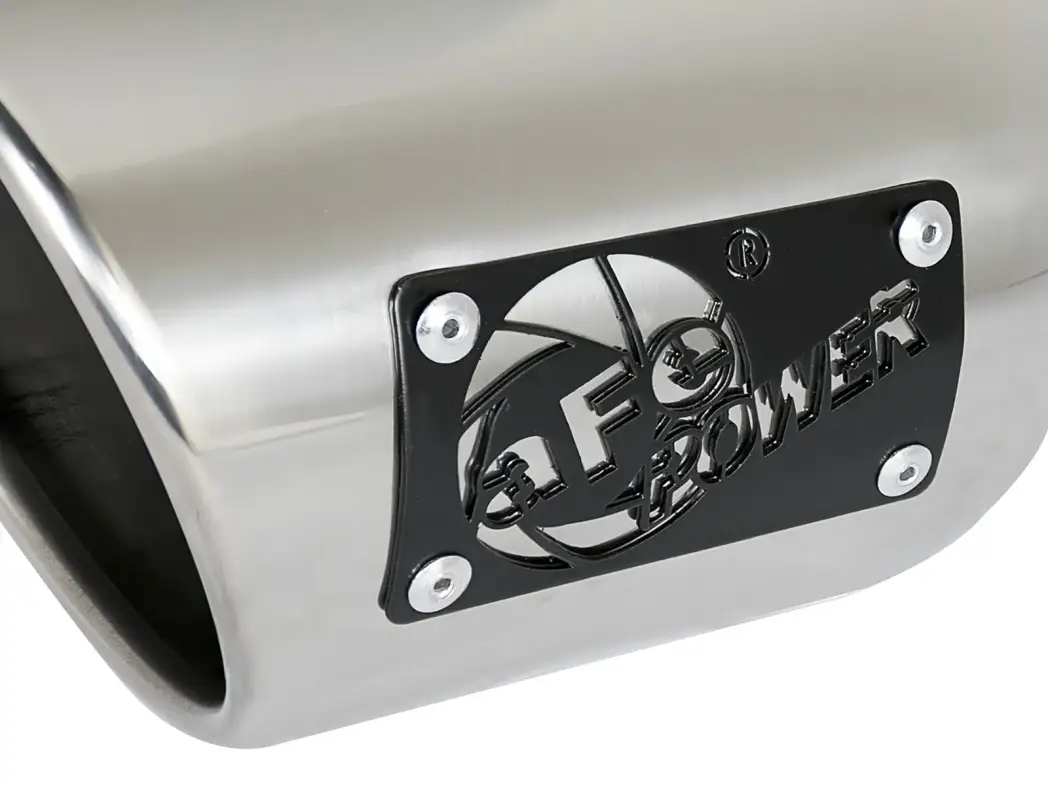 The exhaust tip comes with a unique laser-cut aFe Power logo plate riveted on for an aggressive style