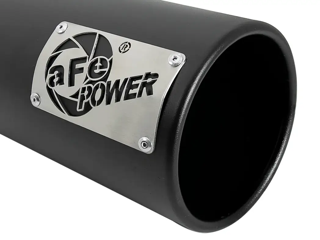 The exhaust tip comes with a unique laser-cut aFe Power logo plate riveted on for an aggressive style.