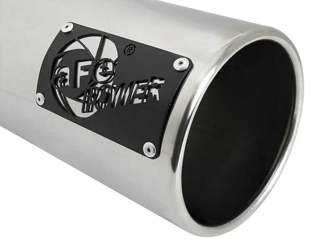 The exhaust tip comes with a unique laser-cut aFe Power logo plate riveted on for an aggressive style.