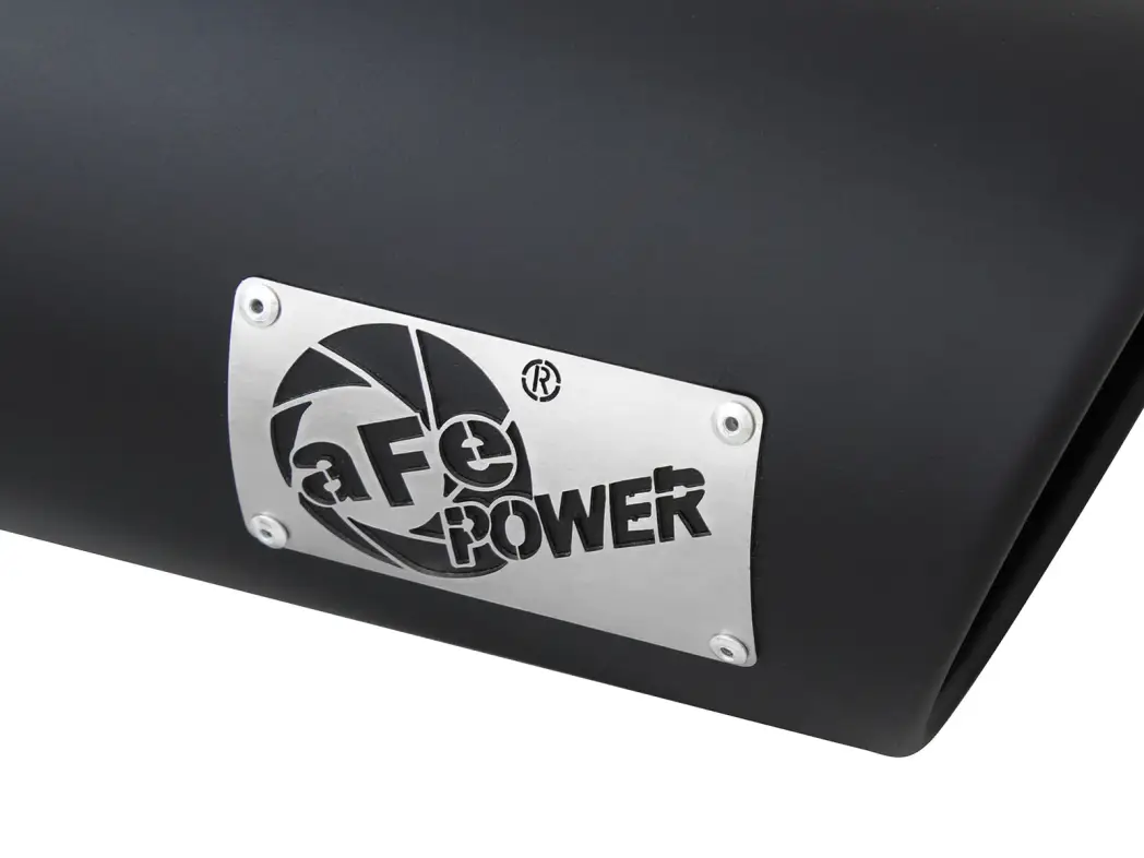 The exhaust tip comes with a unique laser-cut aFe Power logo plate riveted on for an aggressive style.
