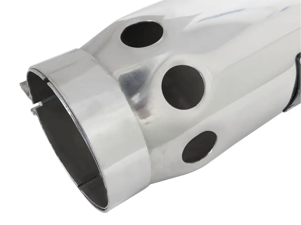 The exhaust tip comes with a unique laser-cut aFe Power logo plate riveted on for an aggressive style