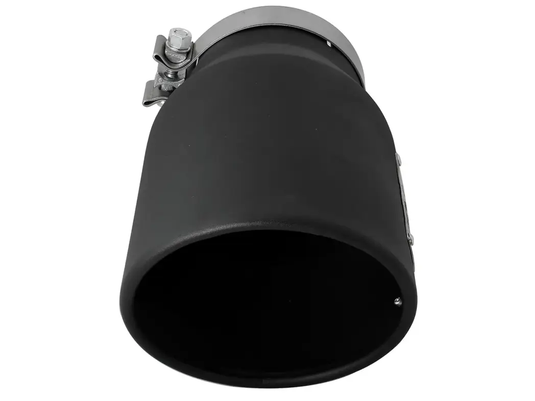 aFe Power is proud to introduce the all new diesel exhaust tip. This tip comes with a black finish and is designed to fit 5" exhaust systems. With a 5" inlet x 7" outlet and 12" inch length, this single-walled, angle cut rolled tip comes with a unique laser-cut aFe Power logo plate riveted on for an aggressive style