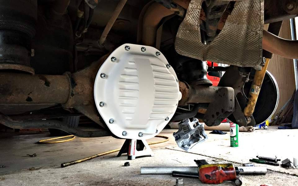 Note for installation: The sway bar and pan hard (track) bar may be in the way during installation. Plan on temporarily dropping or loosening these bars to swap out the stock cover for the PML cover.