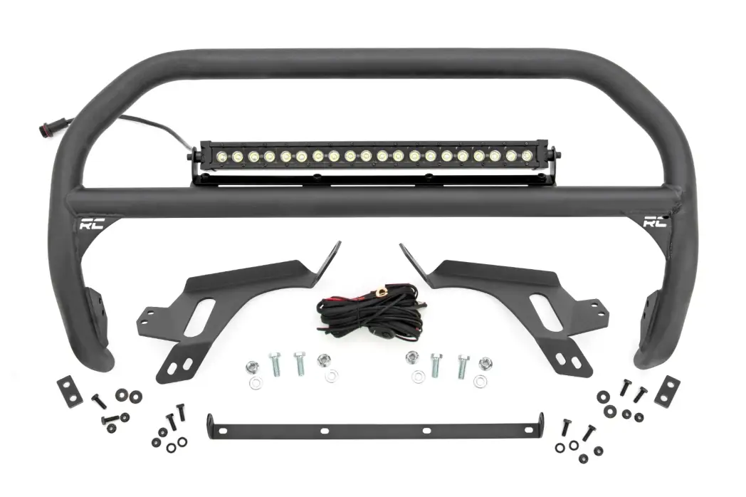 51156 | Rough Country Nudge Bar For Ford Bronco Sport 4WD Badlands | 20 Inch LED Light Bar, Black Series With White DRL