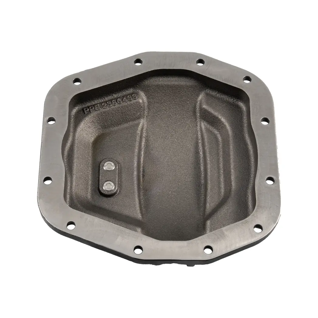 The PPE heavy-duty nodular iron front differential cover is designed as a bolt-on upgrade for your thin, stamped steel factory diff cover. This cover offers maximum durability thanks to its thick, cast, high-strength nodular iron construction. Our cover has been carefully engineered to optimize your vehicle’s approach and departure angles, ensuring that it can navigate any terrain with ease. It is also built to handle the high torsion of challenging off-road environments, with transverse gussets that add strength and rigidity to the housing. When installed, the hardware is recessed within the flange and protected from potential damage.