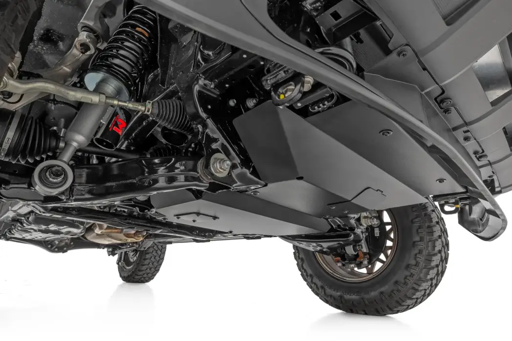 Durability That Lasts: Finished in a premium gloss black powder coat, these skid plates deliver superior corrosion resistance and a sleek look that stands up to the toughest conditions. Unlike plastic, which can crack or warp under impact, Rough Country's steel design ensures long-term reliability and protection in any environment.
