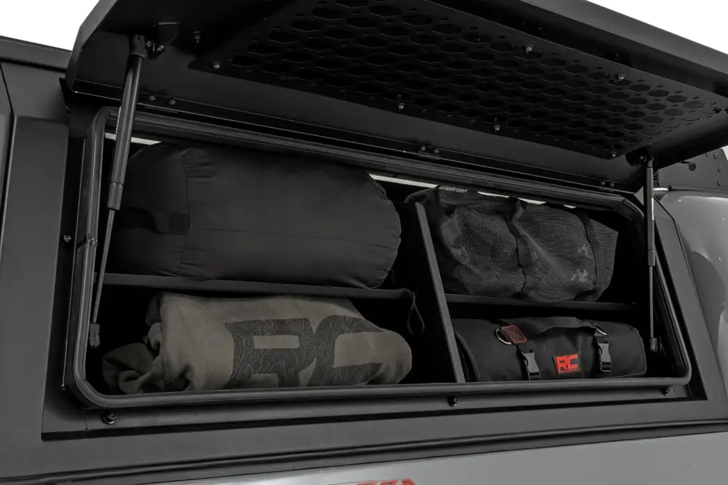 Customizable Storage Solutions: The modular setup allows you to adapt the topper to your unique needs with exterior Molle panels, optional interior shelves, and a optional driver-side storage box. Keep everything in its place so you're ready to tackle any task.