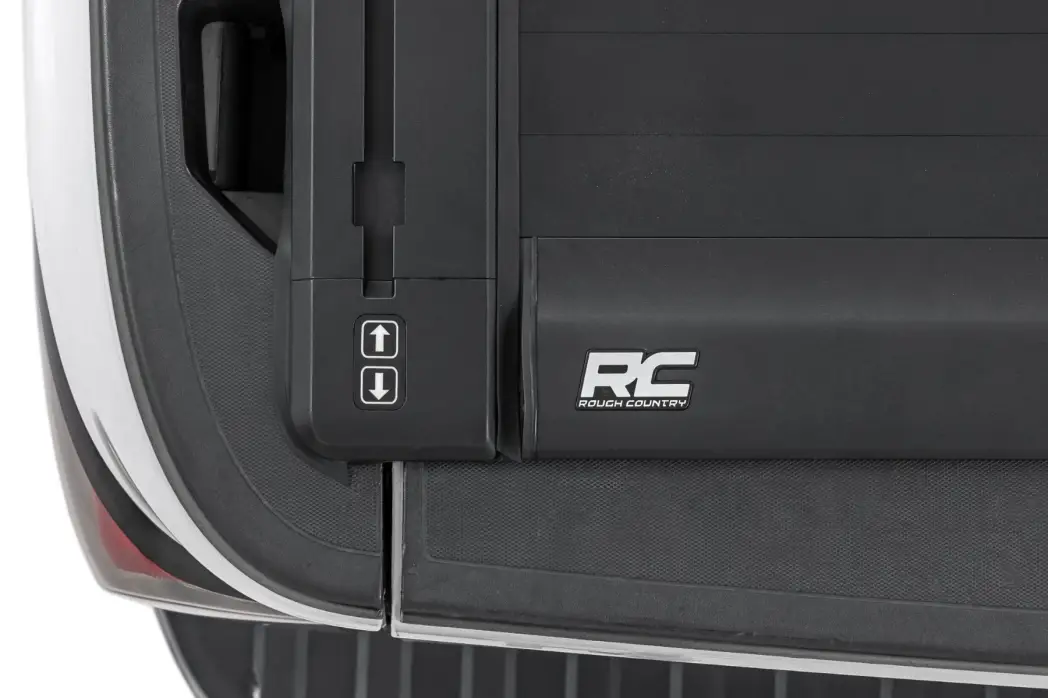 Rugged Protection with Everyday Functionality: Shield your gear from the elements and elevate your truck's style with Rough Country's Powered Retractable Bed Cover for Chevy/GMC 1500 models. Built from heavy-duty aluminum and finished in a stealthy matte black coating, this cover offers long-lasting durability that stands up to harsh weather, off-road abuse, and daily wear. A UV-resistant finish prevents fading, while sealed ball bearings deliver smooth, maintenance-free operation every time you open or close the cover.